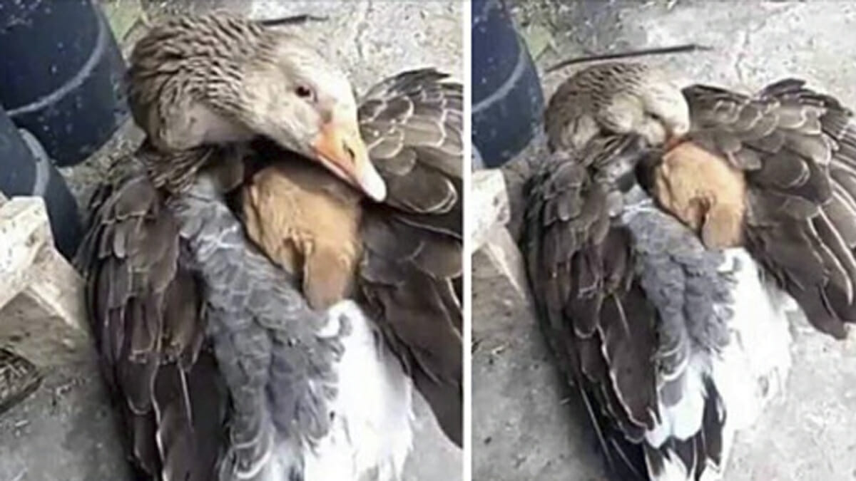 Kuvan julkaissut Suzanne Padapetra nimittäin kertoo, että hanhi oli tiettävästi jäätynyt sen takanaan olevaan metalliputkeen kiinni suojellessaan koiranpentua siivillänsä kylmältä.