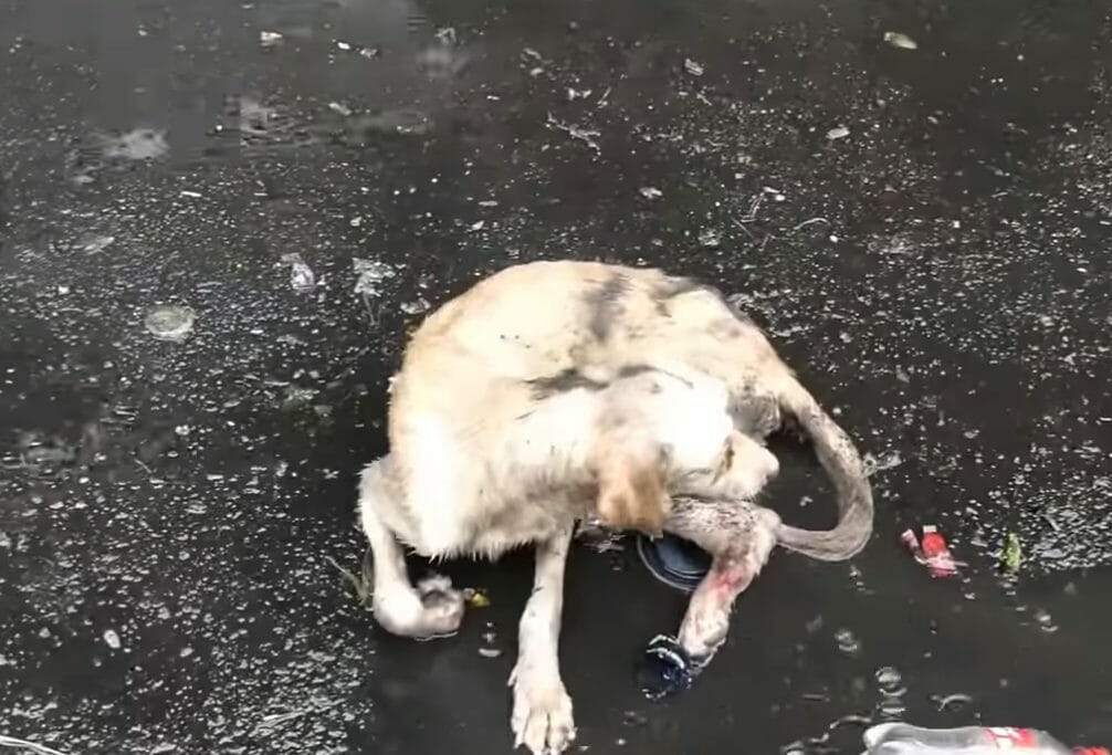 Carinan sydän särkyi hetkessä. Hän ymmärsi koiran olevan niin kylmissään, että se ei pystynyt liikkumaan. Se vain makasi yksin lätäkössä. Kylmässä sateessa.