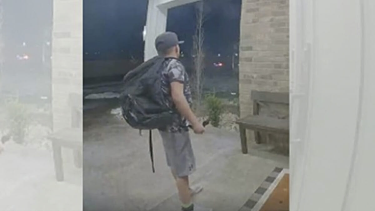 Perheen turvakamera tallensi tilanteen, jossa Grayden saapuu kotiovelle. Hän vetäisee kahvasta, mutta ei pääse sisälle – ovi on lukittu. Poika juoksee saman tien pihalle huutaen äitiänsä ja poimii maasta kiven puolustautukseen.