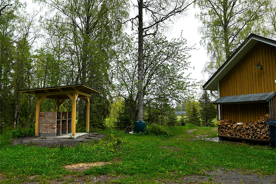 Kun mökin takapihalla sijaitsevaa ”miesluolaksi” muutettua latoa ja vierasmökkiä remontoitiin muutamia vuosia sitten, otti pihamaa kuitenkin osumaa työmaakoneiden seurauksena.