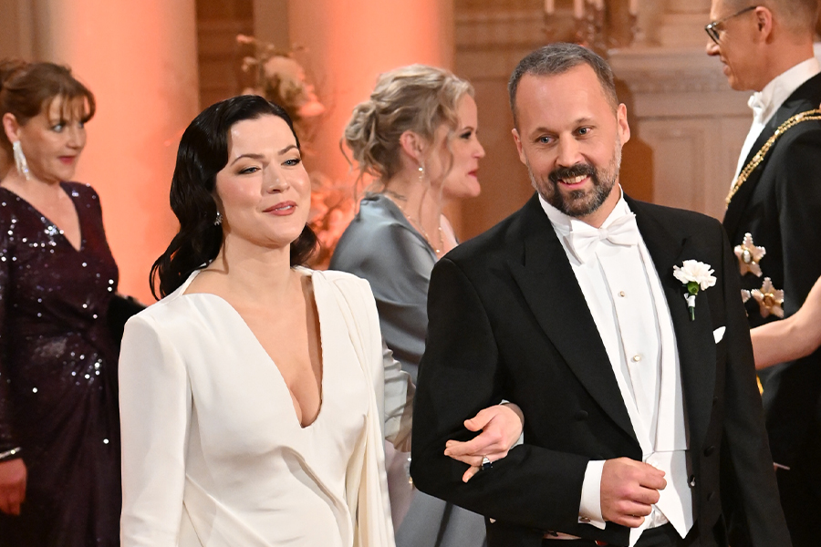 Vartiainen toi myös juhlaan mukaan avecin, harvoin julkisuudessa nähdyn aviomiehensä Sami Salmenkiven.