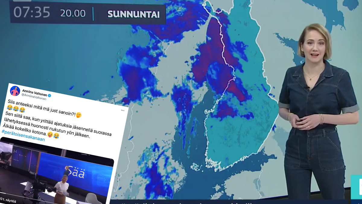 Ylen suosikkimeteorologi Anniina Valtonen sai monet höristämään korviaan maanantaiaamuna, kun meteorologilta menivät sanat sekaisin toistuvasti suorassa lähetyksessä heti säätiedotteen alussa.